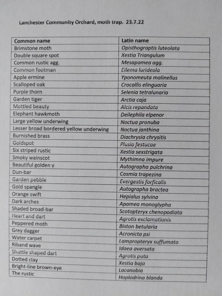 There was a great turnout of members and their families to see how many different species of moth we had caught in the moth traps in the Orchard. Here are just a few of them, and a list of the moths we found. It highlights the great diversity of wildlife in the orchard! Many thanks to Terry and Viv for organising this.