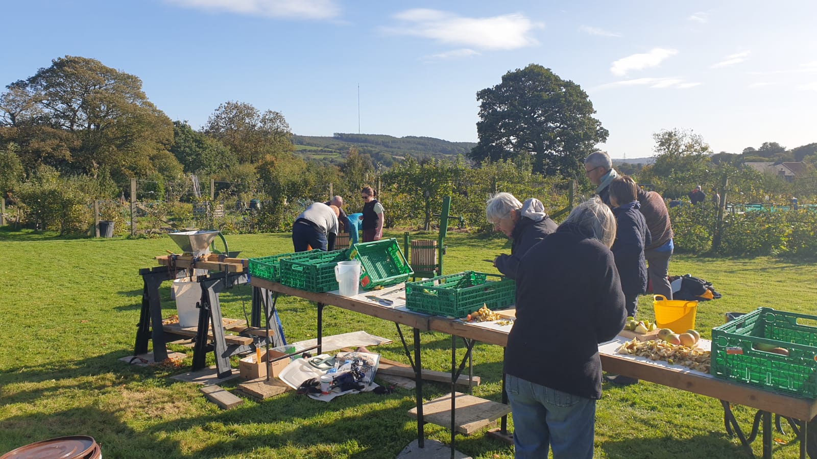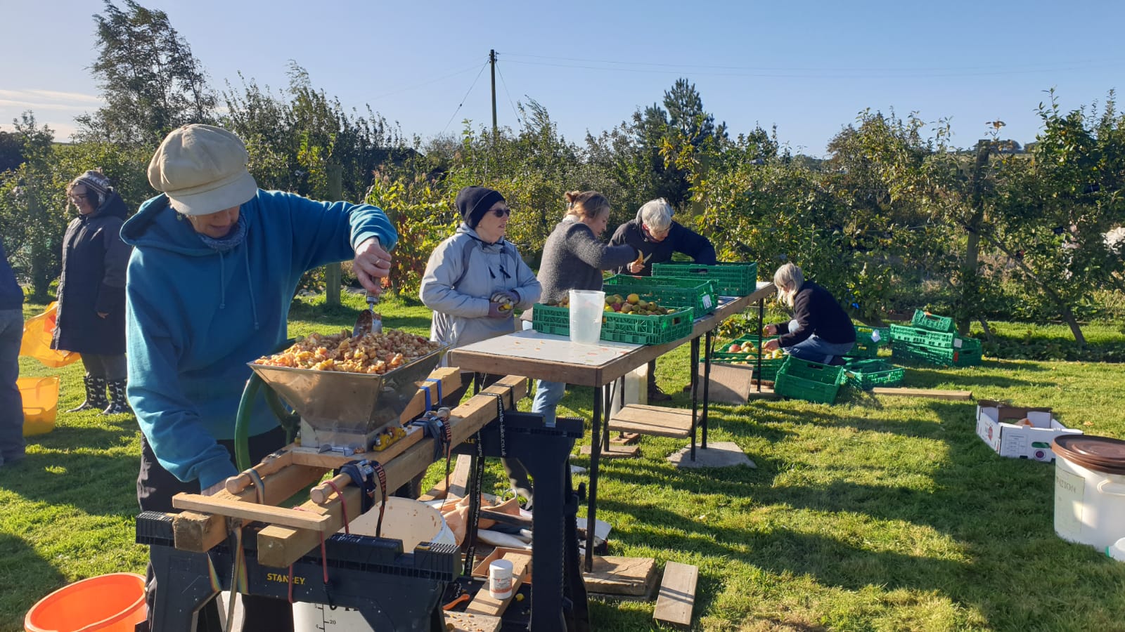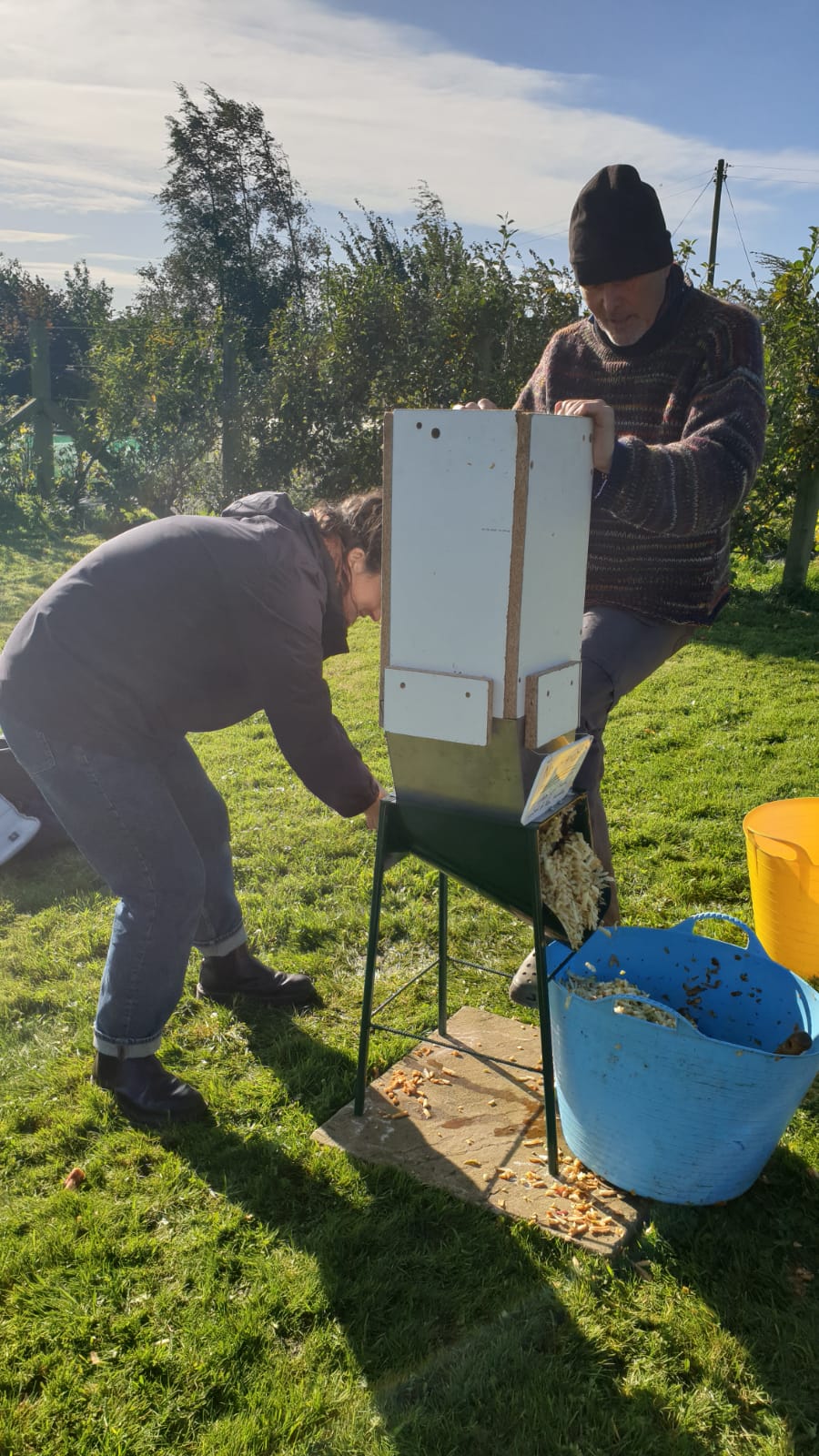 This year’s wonderful summer has produced a great crop of apples in the orchard. On a bright Sunday morning, orchard members enjoyed the sun, wandering round the orchard picked apples. Our younger members had good fun choosing their own apples and tasting them. Everybody pitched in to help with the apple juicing, and we all went away with bottles of fresh, organic apple juice.